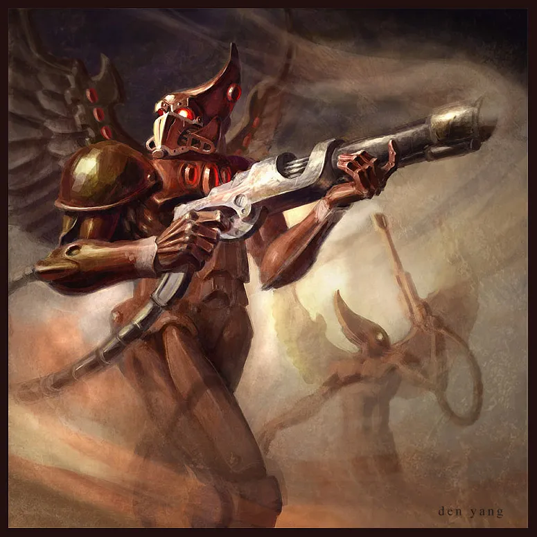 Технология эльдар настолько развита, что для молодых рас подобное оружие смахивает на колдовство, способное нарушать законы природы и разрывать ткань реальности. Для эльдар же, каждое оружие — инструмент искусства смерти, обладающий зловещей красотой.