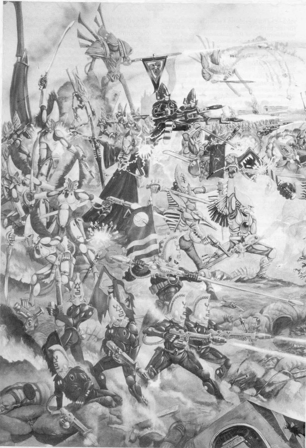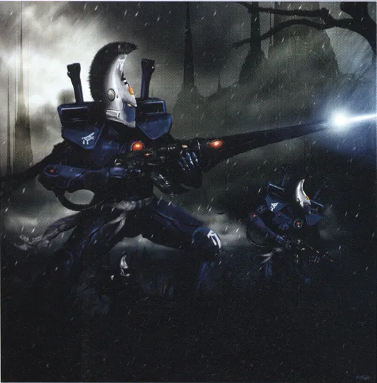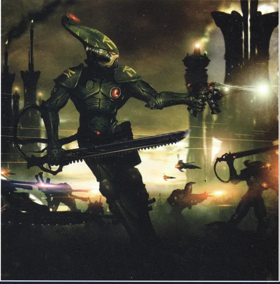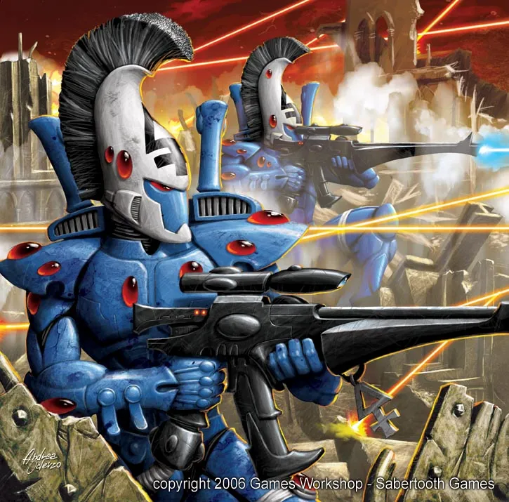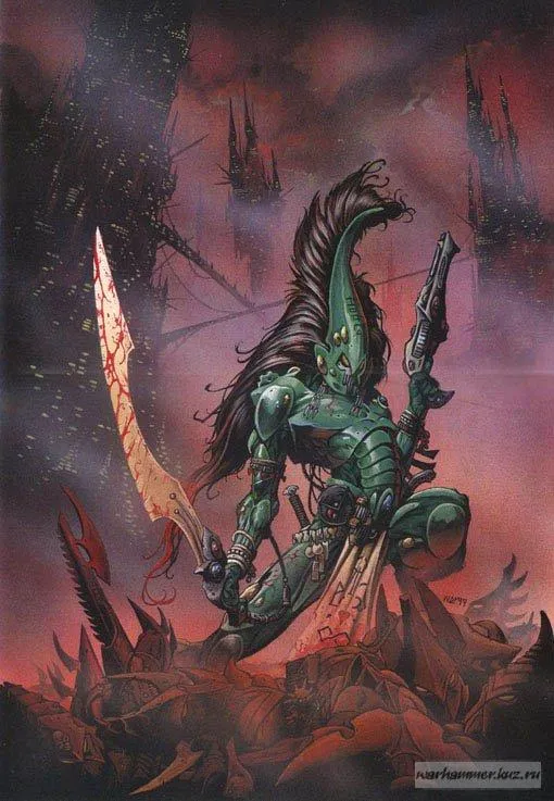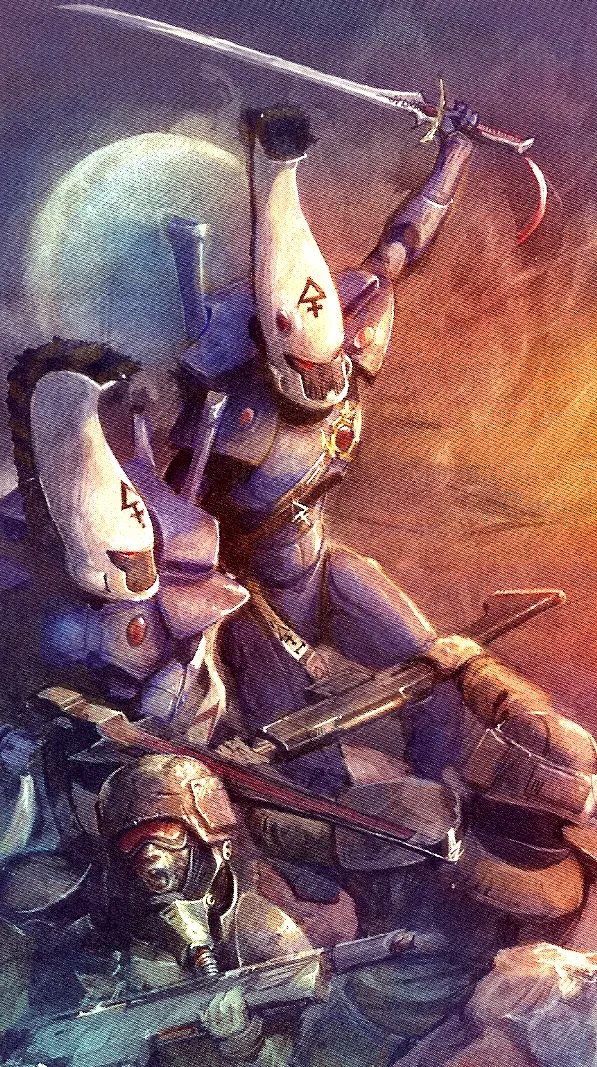 «Я слышал истории о колдунах, способных предсказать твою судьбу, воительницах, чьи вопли заставляют кровь в жилах застыть, машинах, сражающихся с изяществом танцора, и огненных демонах, что не могут пасть. Ничто из этого меня не встревожило, кроме одного. Когда сражаешься с эльдар, следи за небом!» — полковник Ишмаил Мотт.