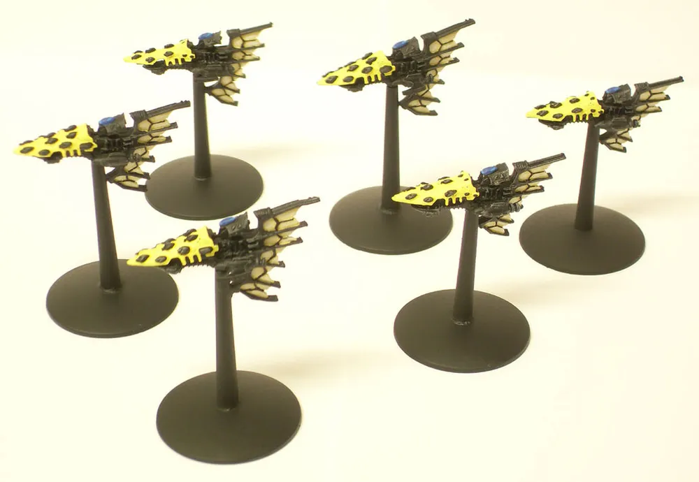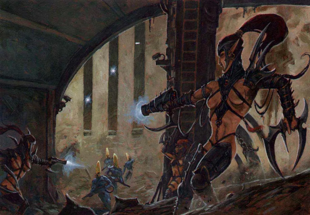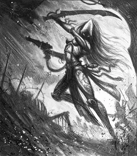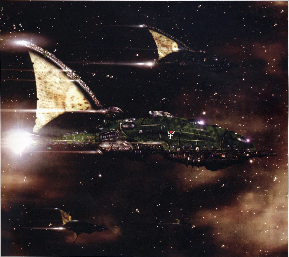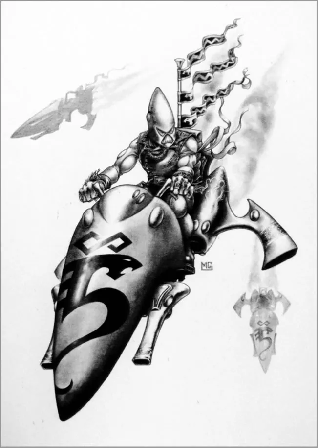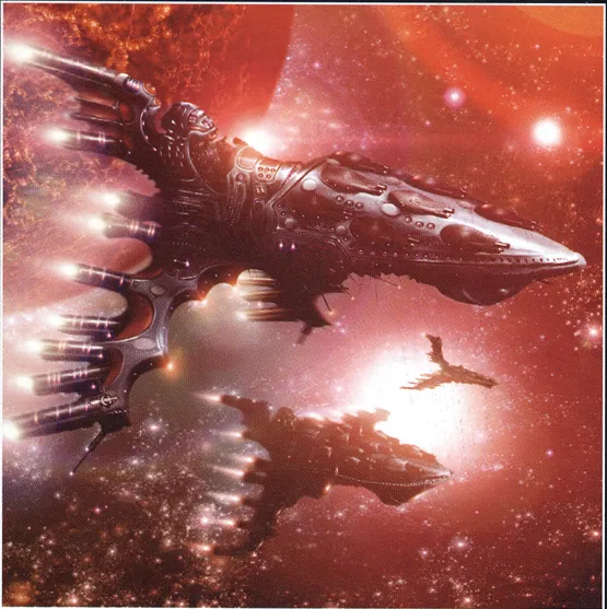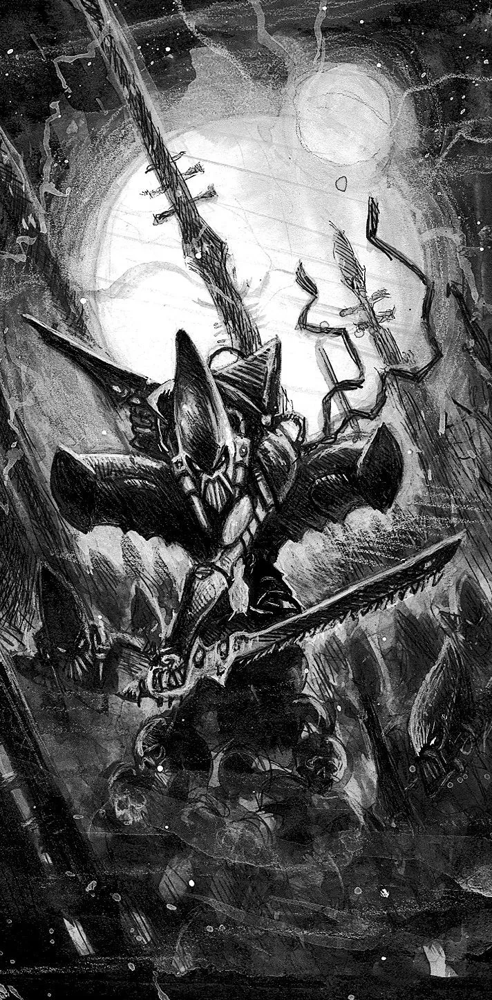 Мои исследования показали, что «Вампиры-налётчики» — излюбленная техника корсаров эльдар, способная быстро пронестись к поверхности планеты на скорости, во много раз превышающей скорость звука, и с ловкостью хищной птицы, а также защитить себя даже в том случае, если нет обычного прикрытия силами истребителей «Крыло ночи».