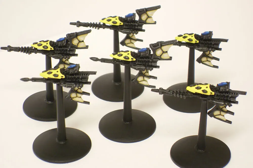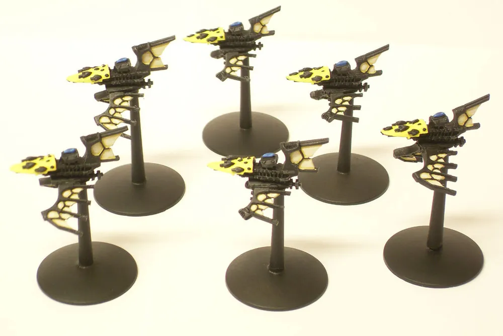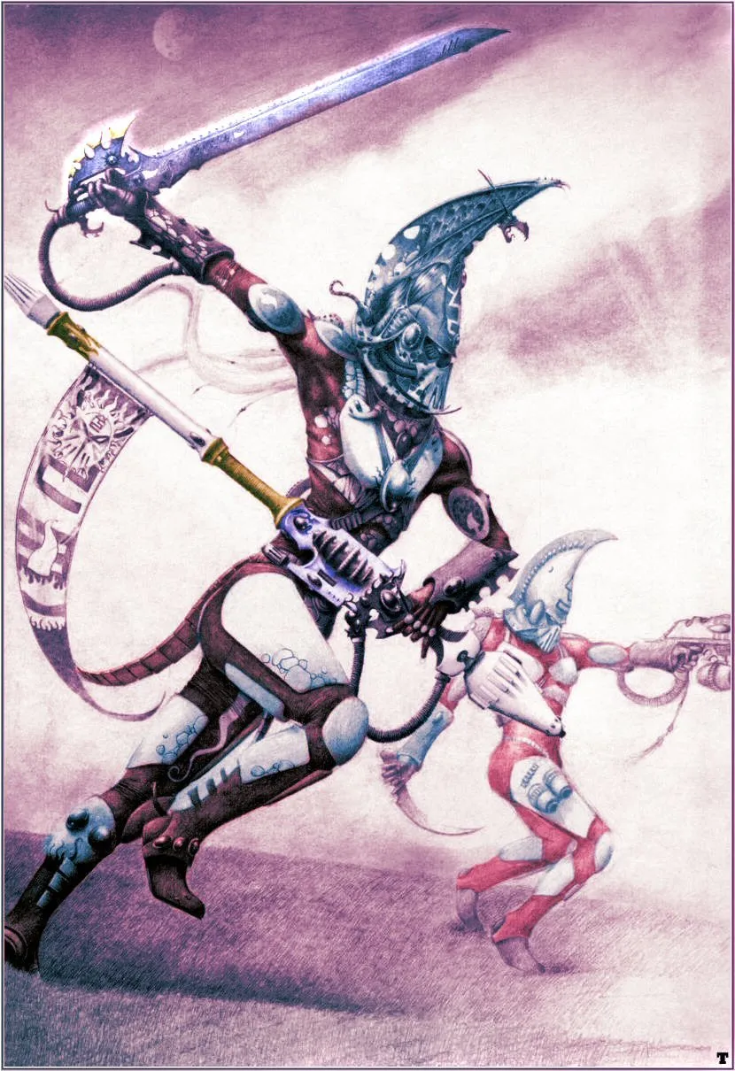 Эльдар — просто-напросто хозяева неба. Их самолёты способны развивать такую скорость, на которой самолёты других народов развалились бы на части… если бы двигатели вообще были способны достичь её. Все немыслимые пируэты, маневры, фигуры высшего пилотажа и перевороты, исполняемые авиацией эльдар, послали бы других в крутое неуправляемое пике, и, тем не менее, пилоты эльдар спокойно делают опаснейшие бочки снова и снова, разгоняясь всё сильнее и сильнее перед тем, как снова начать выписывать фигуры.