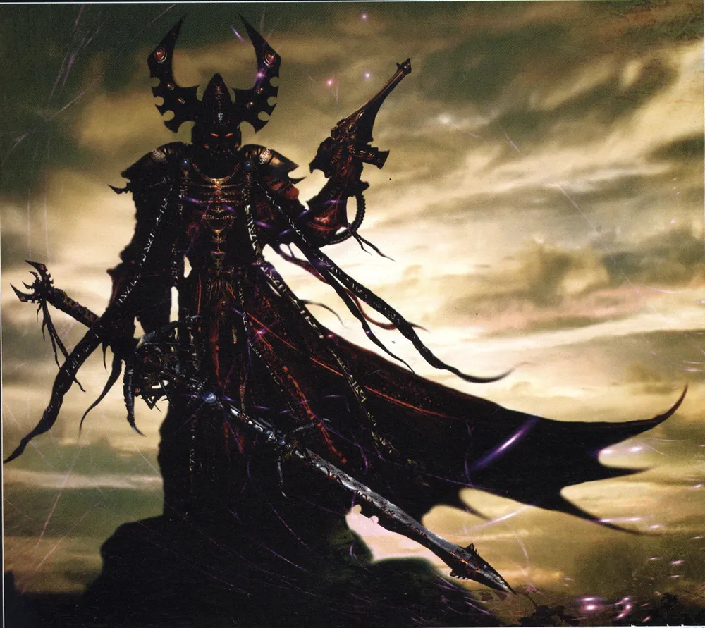 «От Хаина эльдар узнали величайшие тайны войны и кровопролития. От него они черпают свою силу в бою, он даёт им храбрость и волю к победе. Когда эльдар идут в бой, они не реагируют на окружающее их, позволяя духу Хаина завладеть ими. Так они могут совершать ужасно жестокие деяния, оставляя свой разум незапятнанным ими» — инквизитор Чевак.