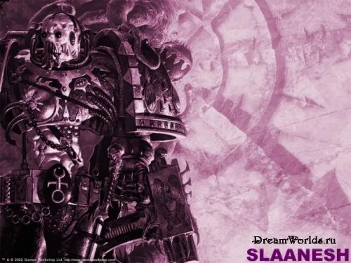 И какой невообразимо омерзительный и тошнотворный разум бессознательно пробудили в варпе эльдар. Это была тень их самих, того, чем они стали, когда порочность и бесстыдство заменили благородство и гордость. В течение многих лет безумие владело эльдар. Миры полыхали, эльдар убивали, хохоча, и тут же пировали свежими трупами, а в варпе медленно пробуждался Великий Враг. Слишком поздно эльдар осознали, что создали бога по своему образу и подобию, бога непомерного и могущественного, вскормленного темной стороной эльдарских душ. Ни одно создание доселе не считалось столь ужасным или развращенным как бог Хаоса Слаанеш, "Та-Что-Жаждет", воплощенная гибель эльдар.