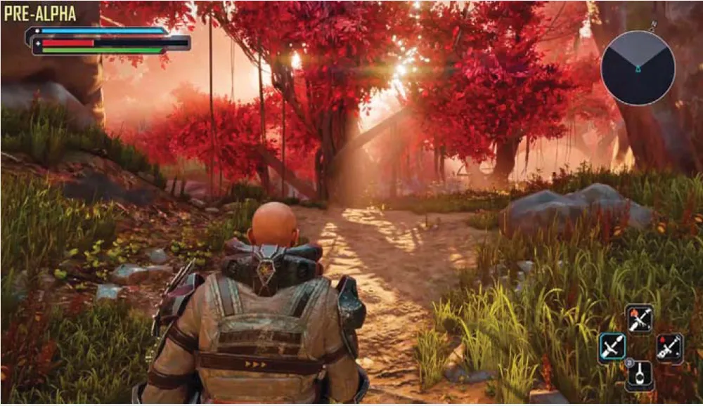 Очень показателен бой с гигантским циклопом, который может убить нас одним ударом. В такие моменты вспоминаешь боёвку Dark Souls, потому как каждый перекат и каждый удар подбирается особо тщательно. Разработчики говорят, что в релизной версии циклоп будет выпускать лазерные лучи на дальние дистанции из своего маленького глаза. Проклятье! Радует, что оружие дальнего боя теперь просто и красиво работает, и оно уже не такое громоздкое, как в предыдущих играх Piranha Bytes. Эволюция в чистом виде. В самом деле, теперь мы имеем значительное разнообразие в стратегиях поединков, и всё благодаря научно-фантастическому сценарию игры.