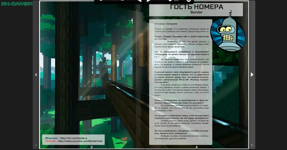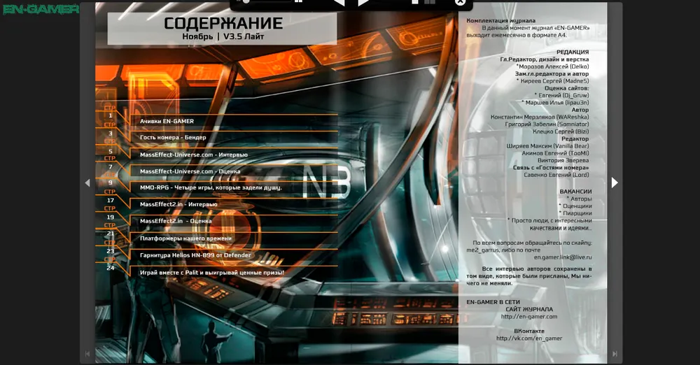 Мы устроили посиделки с такими гигантами, как «MassEffect-Universe.com» и «MassEffect2.in», коим выражаем благодарность за отклик. Отдельное «спасибо» хочется выразить летсплейщику Bender, занимающемуся прохождением модов по MineCraft, интервью с которым вы также найдёте в этом номере.