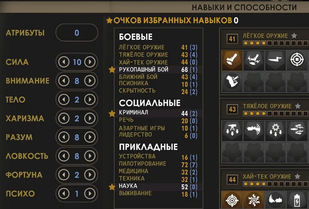 Конечно, при генерации героя я по понятным причинам взял «Криминал» и «Науку», а третьим – «Рукопашный бой»: только он позволяет повышать защиту персонажа и успешно сражаться с турелями. К счастью, представительница «Чёрного» крыла не отказалась от предложенного пулемёта…