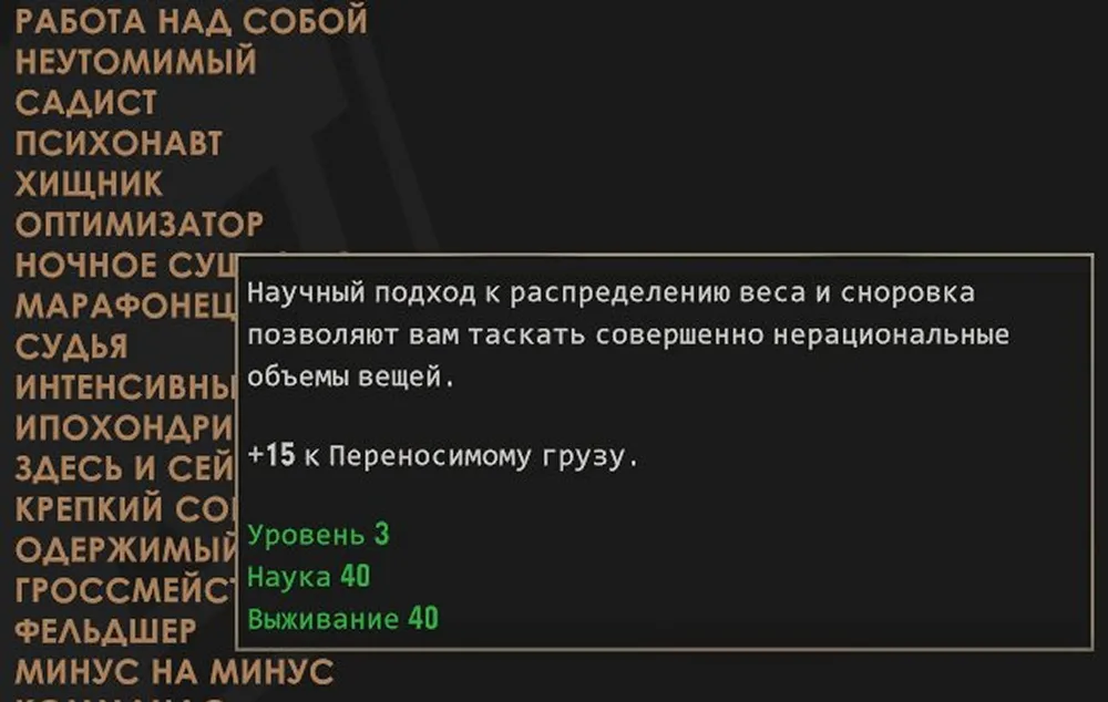 Что касается перков: то, что мы бы хотели видеть улучшенным, осталось неизменным и наоборот. Взять перк ради пятнадцати единиц переносимого груза? При том, что перегрузка превышает норму в несколько раз? Да это же смешно! Добро бы он повышал переносимую нагрузку на 50%...