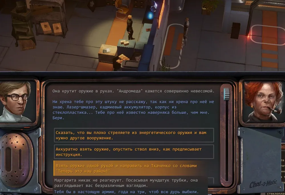 При получении оружия задался вопросом: что будет, если из варианта ответов выбрать глупую фразу с такими же действиями? Ничего не случилось – доктору просто не выдали энергоячеек к пистолету. (Скорее всего, то же самое ожидает «шутников», получающих любые другие «стволы».)