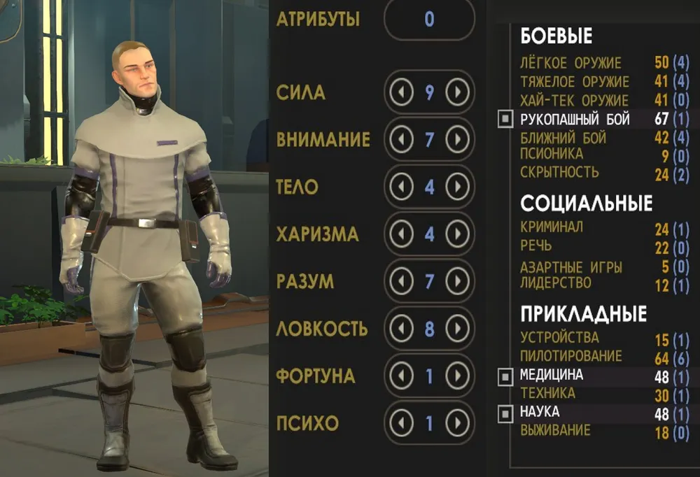 Признаться, я создал техника раньше, чем преступника, не особо «заморачиваясь» с характеристиками: нужно было проверить работу одноимённого навыка. Как вдруг – хлоп! – сто двадцать единиц за разведку!