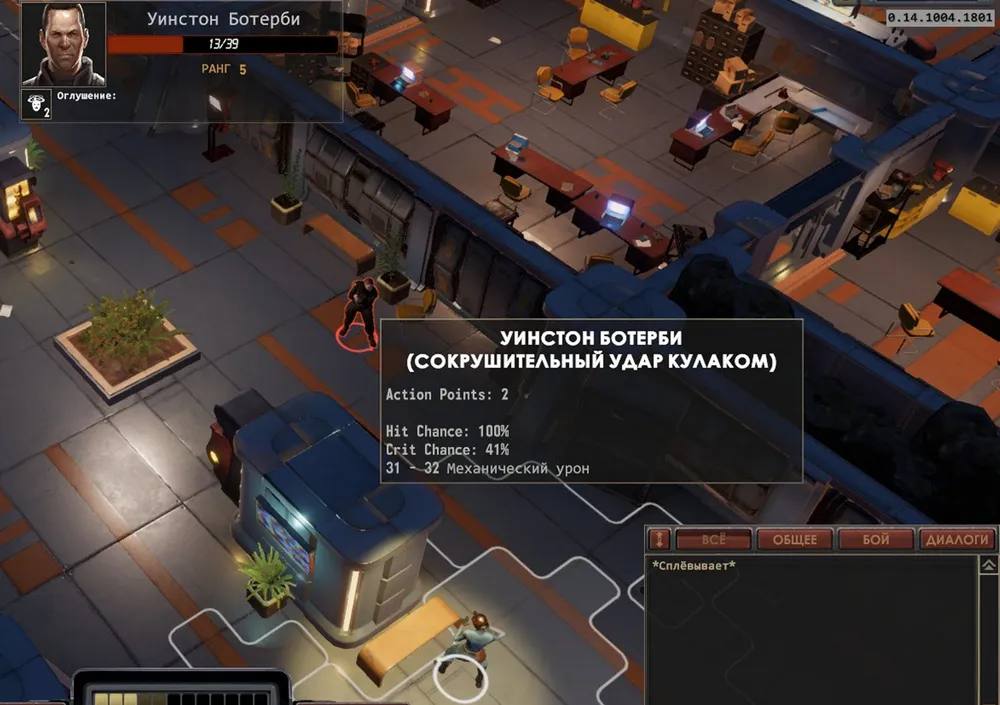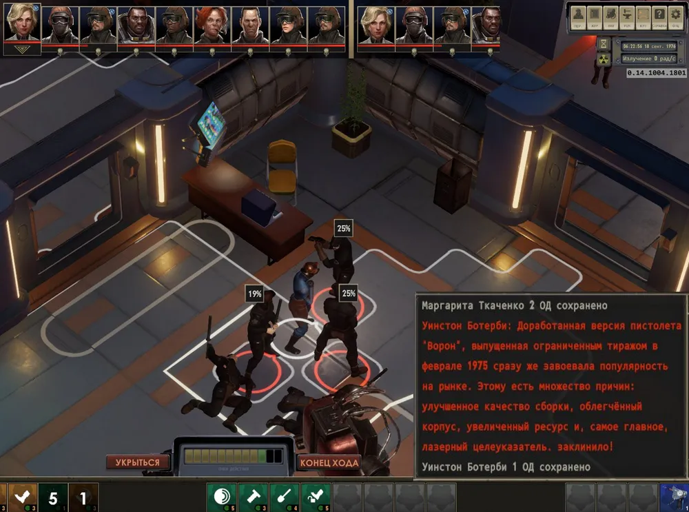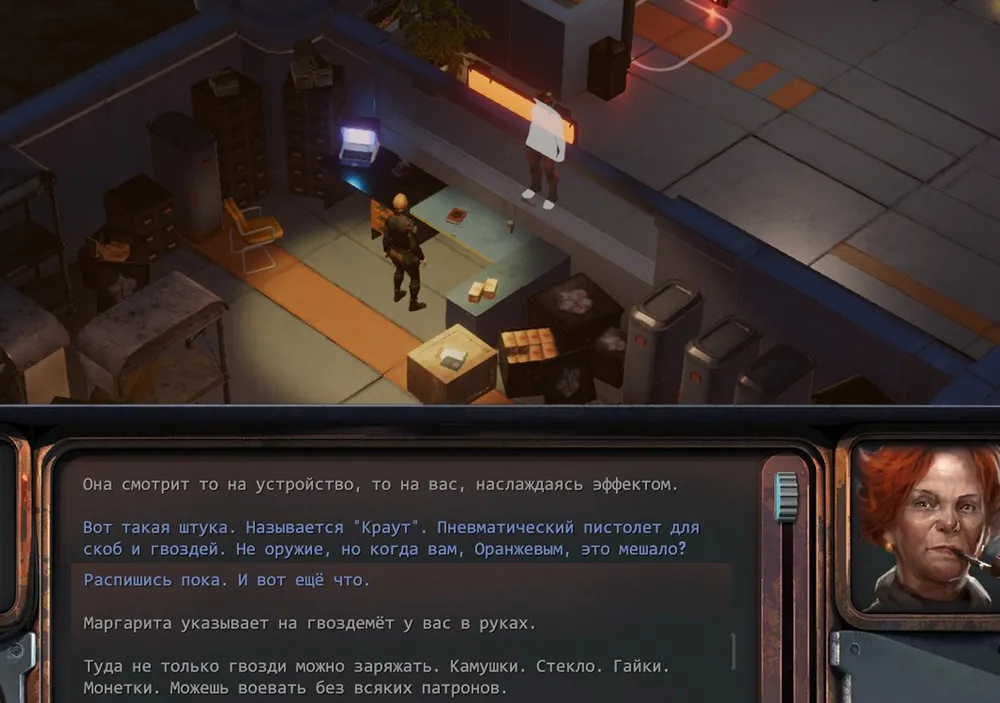 Получено задание - обследовать соседнюю базу, на втором этаже героиню ждёт тягач, при приближении к которому возникает соответствующее сообщение. Которое возникает независимо ни от чего, в том числе – и во время боя. Причём при его появлении очки хода героини полностью теряются. Пустячок, но всё же неприятно.