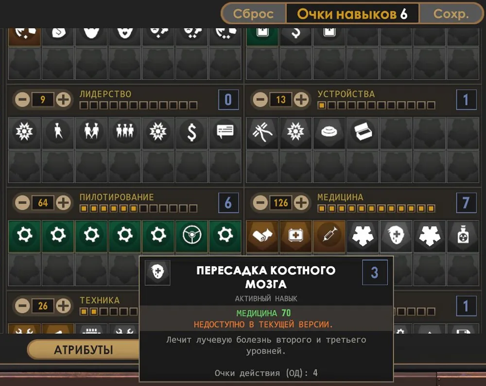 Уровень повышен, герой развивает «Медицину» до предела и убеждается – она не работает; продолжать путь не стоит.