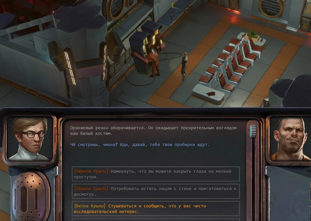 На мой взгляд, неправильно лишать «оранжевого» возможности выполнить квесты. Накаяму он мог бы подкупить, или напомнить об увлечении того карточной игрой: в общем, что-то можно было сделать. Точно так же заключённый мог случайно подслушать разговор о побеге или найти записку – и потом решить, сообщать об этом «чёрным» или нет.