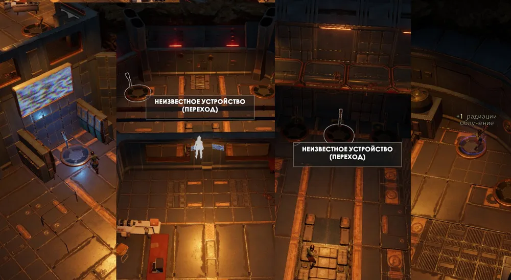 Перед спуском в «Калейдоскоп» обязательно примените защиту от радиации. Последовательность телепортаций – на скриншоте.
