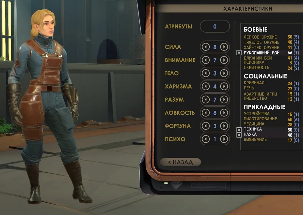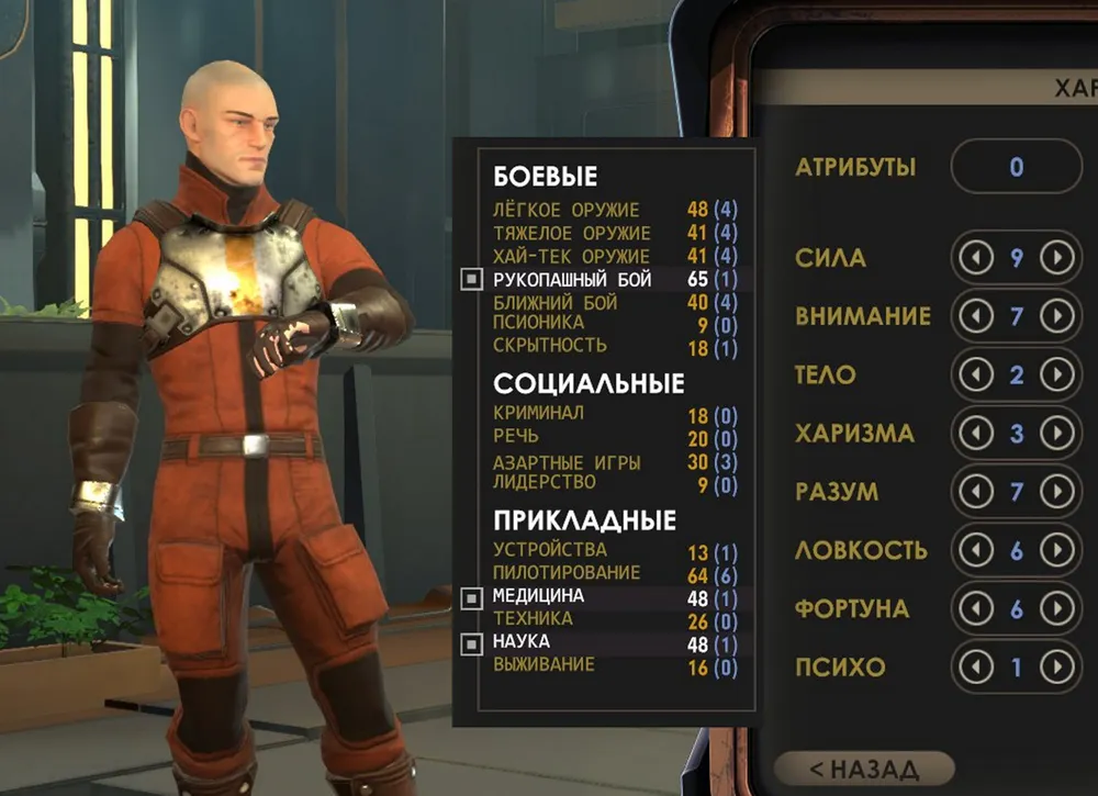Единственный навык, необходимый абсолютно любому персонажу – «Наука», от него зависит способность взламывать компьютеры, с большей пользой сканировать всё неизвестное, и – самое главное! – получать максимум опыта (если повезёт!) за квесты.