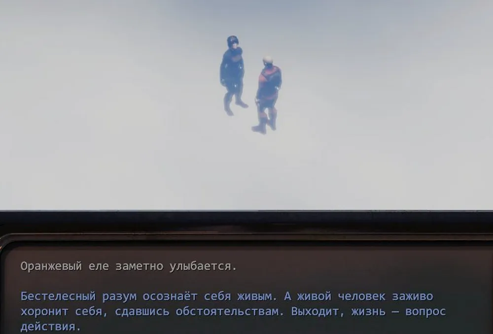 Очередная загрузка, теперь огонь открывает Ида, и возвращается старый баг: с чувством выполненного долга «чёрная» уходит, а трупы остаются стоять. С ними даже можно поговорить и убить! Убить «убитых»! Круто! (Трогать не стал – до времени.)