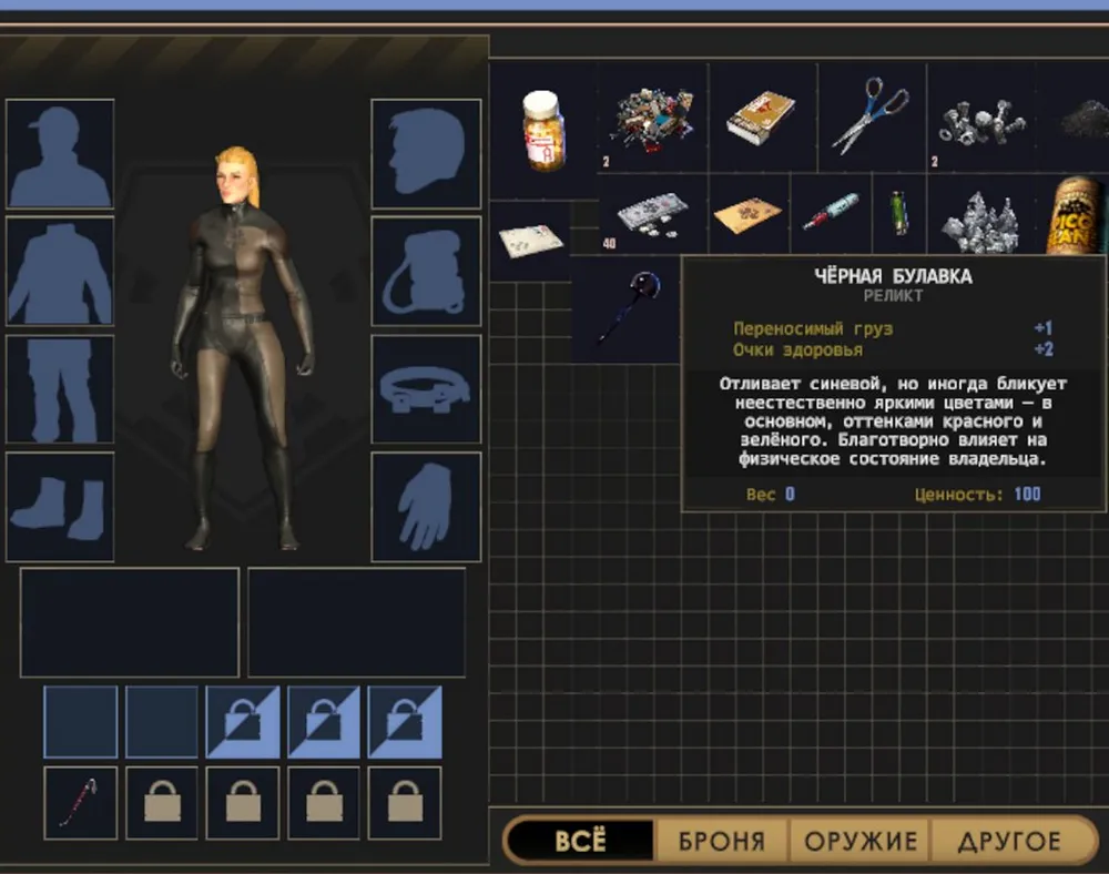 Горы всяческих обломков, деталей, гвоздей, клея, мыла, стекла и прочего занимают всё место в рюкзаке: выбросить жалко – вдруг будет нужно? В итоге героиня теряет часть характеристик из-за перегрузки. Впрочем, это ведь не финальная версия игры, есть надежда, что всё изменится в лучшую сторону.