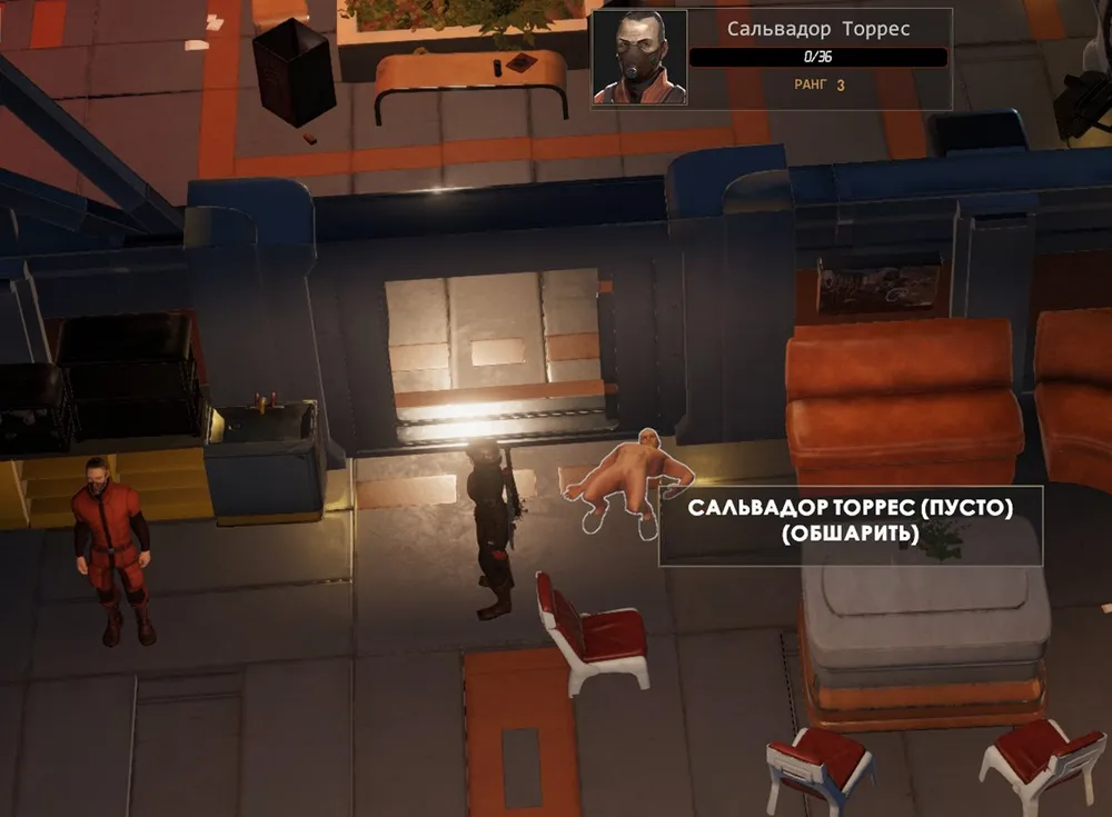 Выгоняем «оранжевого» из активной зоны, помогаем двум другим обыскать вентиляцию. Если подкупить охранника, можно спуститься на секретный уровень, только зачем нам тотализатор?