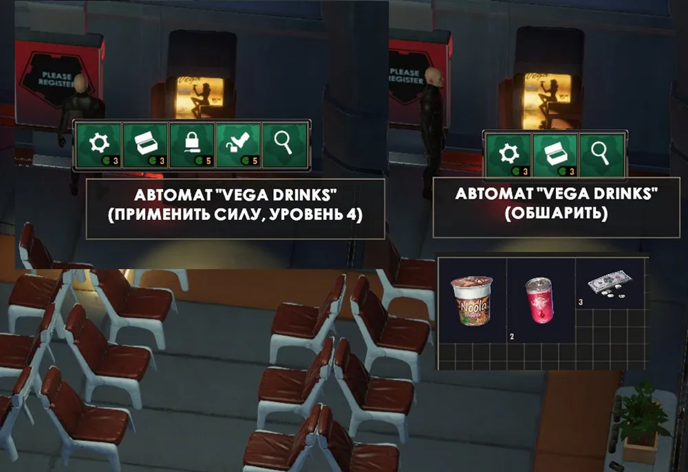 Вернёмся к игре. В холле два пути: подойти к стойке для регистрации или взломать компьютер напротив неё и зарегистрироваться самому – последнее принесёт опыт.