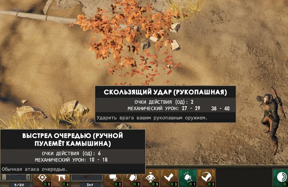 Допустим, герой выпустил пулемётную очередь и решил сохранить оставшиеся три очка действия, чтобы на следующем ходу дать две очереди из пулемёта. Ничего у него не выйдет: при раннем завершении хода в следующий раунд переносится только одно (!) очко. Пропустите три раунда – сохраните три очка (если останетесь живы!). Нет, уважаемые геймдизайнеры, так дело не пойдёт. И без того «обижено» всё оружие (об этом речь впереди), так ещё очки действия не сохраняются!