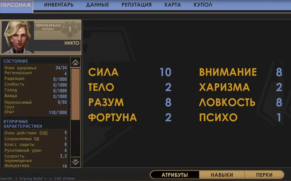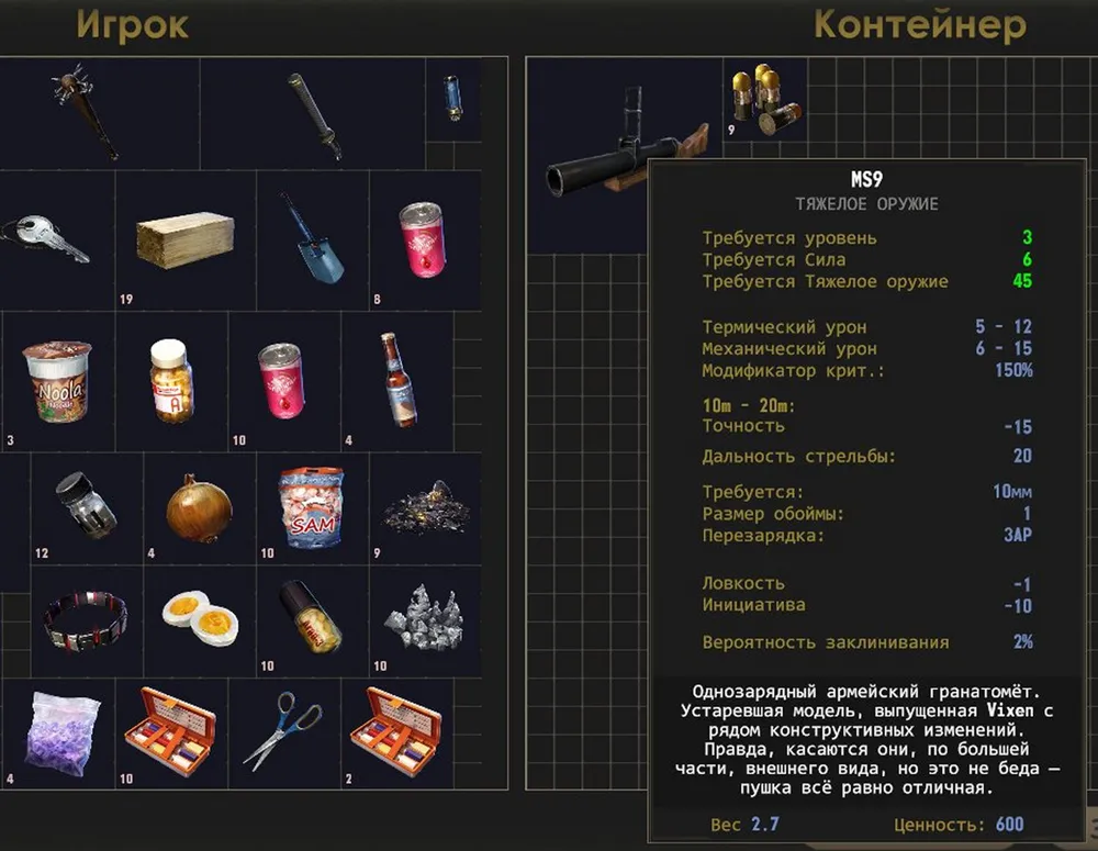 Осталось две вторичных характеристики, на которые не оказывают влияния основные. Скорость перемещения может быть снижена оружием в руках персонажа и количеством переносимого груза.