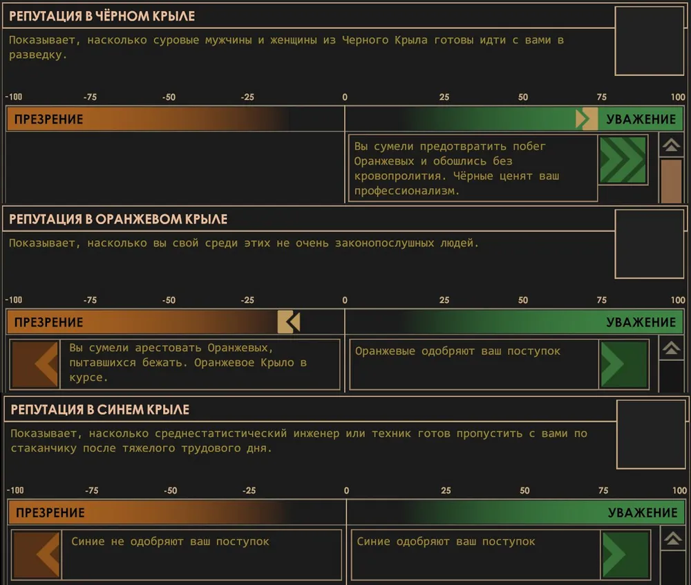 Репутация… Должна повышаться до ста единиц, однако пребывания на главной базе недостаточно для такого повышения. Будет «работать» позже, в пустошах? Практическое применение пока что только одно: «чёрные» позволят получить дополнительные боеприпасы.