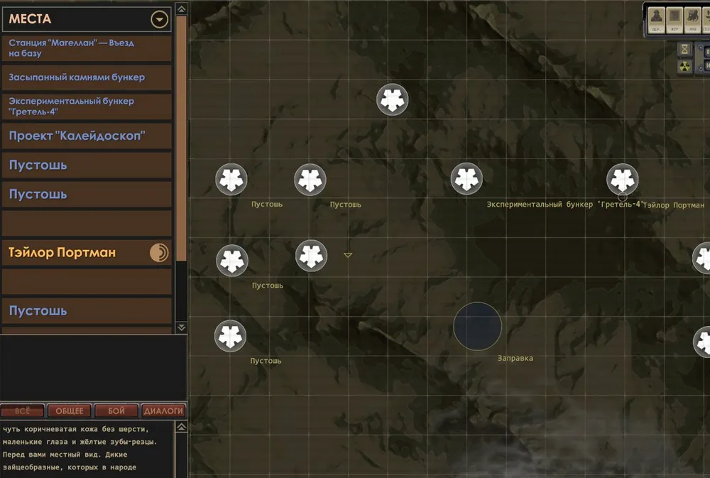 Куда бы ни лежал путь героя, непременно произойдут четыре встречи: доспех (единственная локация, на которую можно войти визуально, но которая не отражается на карте; забрать доспех тоже нельзя – вот чёрт!), «погибший с консервами», странное дерево и бывший «чёрный» (ему повезло, что встреча проходит не на локации – за подобную манеру разговора я бы убил его, не задумываясь). Далее – по карте.
