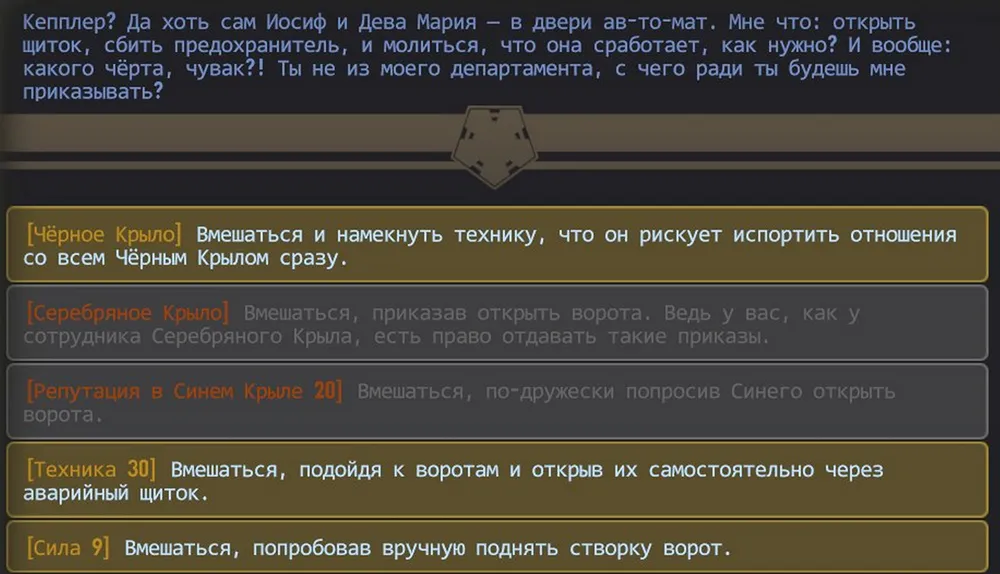 При «спуске» в шахту лифта вновь открылись новые диалоговые строчки, на «Ловкость» и «Выживание». Впрочем, не фатальный «спуск» удавался и до этого, благодаря силе.