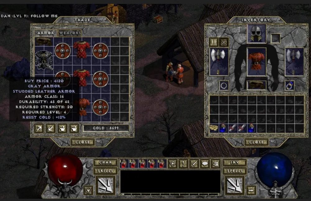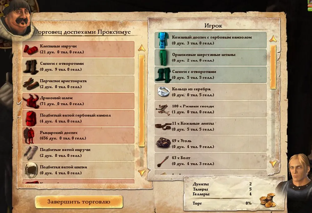 Бродячих торговцев нет, нет и фиксированных предметов. Количество золота у купцов ограничено, и приходится прибегать к смешанному обмену: золото + предметы. Словно этого мало, уровень продаваемых предметов «привязан» к уровню героя.