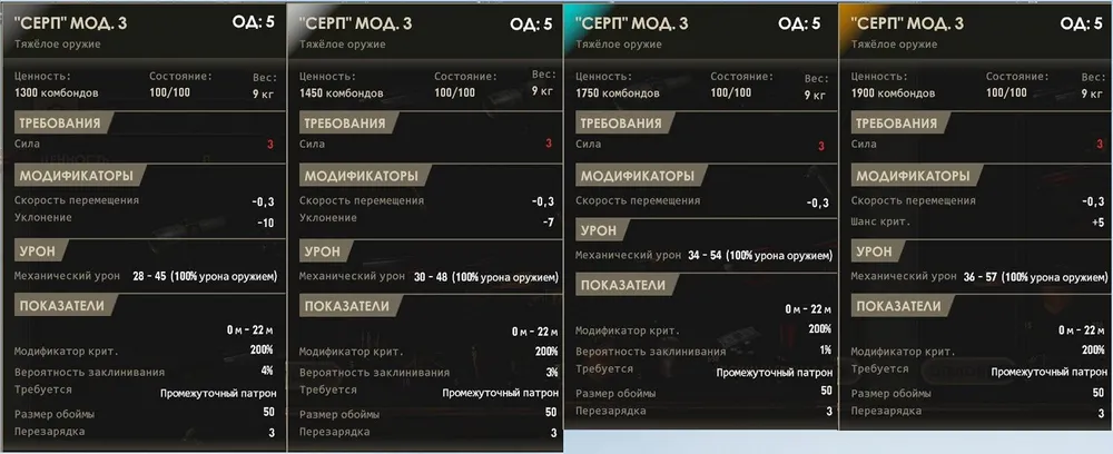 Слегка уменьшилась вероятность заклинивания, да незначительно увеличился урон. Приобретённая чуть позже третья модель оказалась качественнее по всем боевым характеристикам.