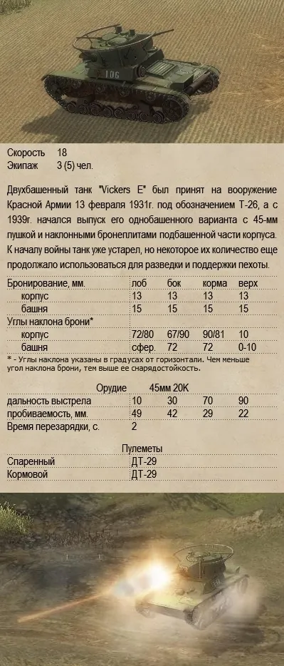 Быстрый и маневренный танк. Расположенные под острым углом лобовые листы брони позволяют снарядам рикошетить при попадании. Отличное действие фугасного снаряда. Танк используется для быстрых прорывов в тыл врага и обороны контрольных точек от наступающей пехоты. Также может применяться для подавления огневых точек противника, доступных для прямого огня. С успехом поражает средние танки противника. Недостатком является отсутствие пулеметчика на башне, что существенно сокращает зону видимости. Дальность стрельбы 110 метров.