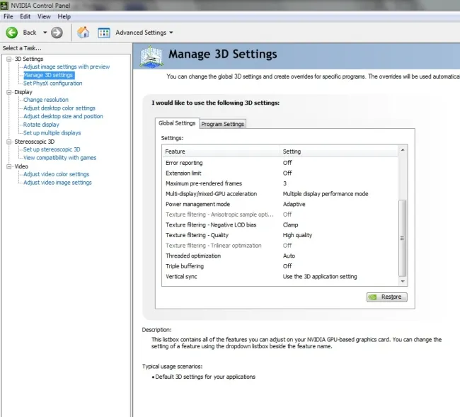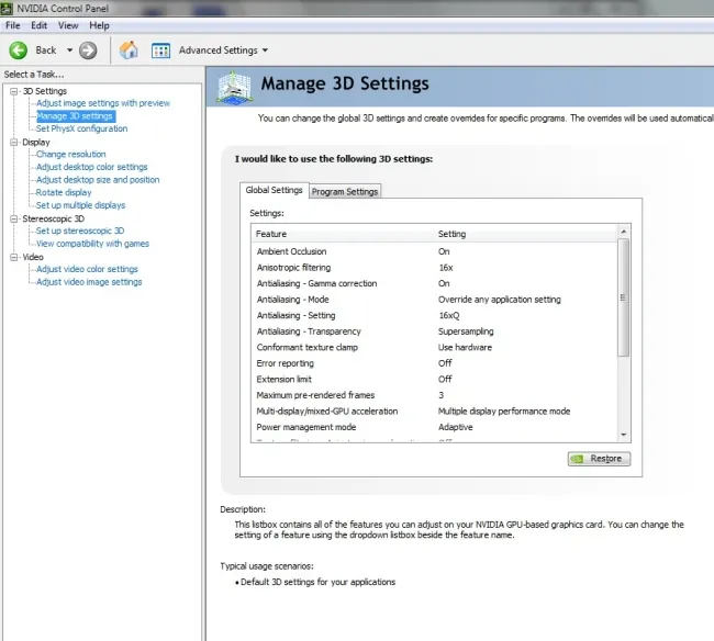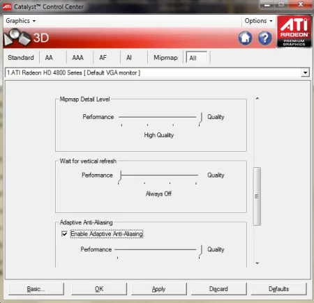 Настройки драйвера: Важно, чтобы настройки видеокарты стояли на максимуме, так вы сможете добиться наилучшего качества.