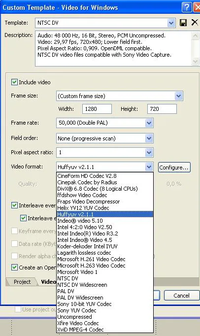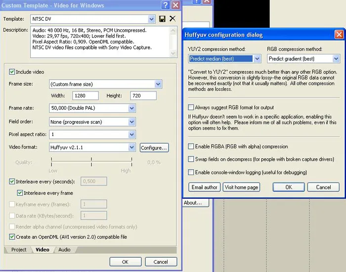 Для настройки huffyuv я предлагаю вам выдержку из статьи Aggressor’а:
