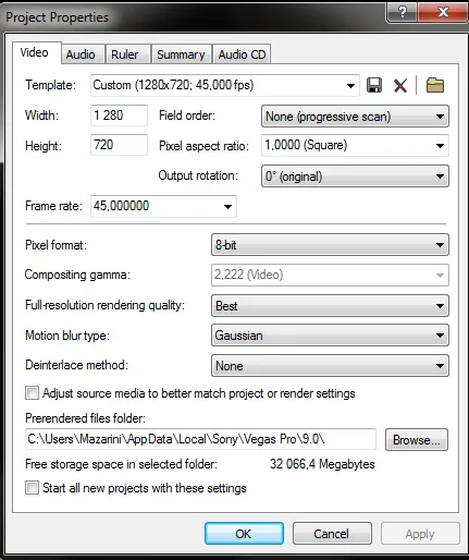 Начнем с того, что Mazarini в пункте 4 своего урока указывает, что использует значение cl_Avidemo 200. Чем больше это значение, тем больше будет занимать исходный материал места на вашем жестком диске. Собственно, об это нас предупреждал и автор урока. Но ему объем диска позволяет использовать значение 200 и поэтому в пункте 5 своего урока, при открытие скриншотов с помощью VirtualDub, Mazarini ставит framerate тоже равный 200. Теперь обращу ваше внимание на то, что в пункте 6 урока, при задании настроек видеопроекта в Vegas’е (первый скриншот пункта 6), Mazarini почему-то ставит framerate 45. На самом деле настройки framerate в видеоредакторе должны быть равны значению framerate вашего видео, с которым вы собираетесь работать в видеоредакторе. Т.е. вместо 45 должно стоять 200. Различия в реальном framerate видео и значении, которые вы поставили в видеоредакторе, почти наверняка доставят вам неприятные сюрпризы или во время работы в редакторе или на стадии кодирования вашего видео, после завершения работ в видеоредакторе. Значение framerate должно быть везде одинаковым.