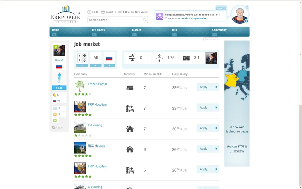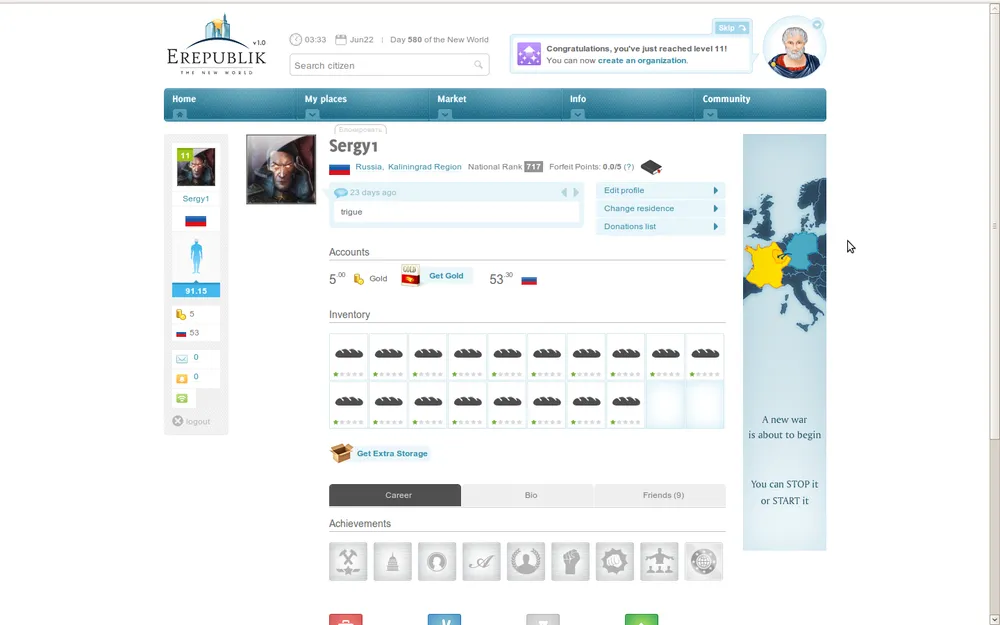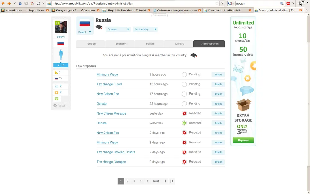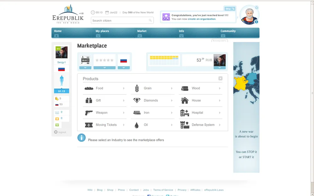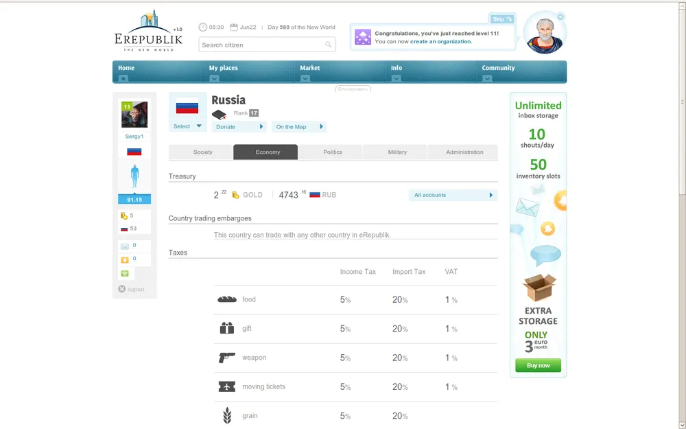 Паспорт жителя eRepublik(и) (стоит 3 доллара)
