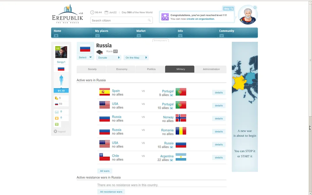 Ну что тут скажешь...Армия она и есть армия, каждый день тренируемся, когда напишут в газете проводим тренировочные бои(вступить в бой можно с 5 уровня, при наличии 40 и более здоровья, суть тренеровочной войны в том, что
