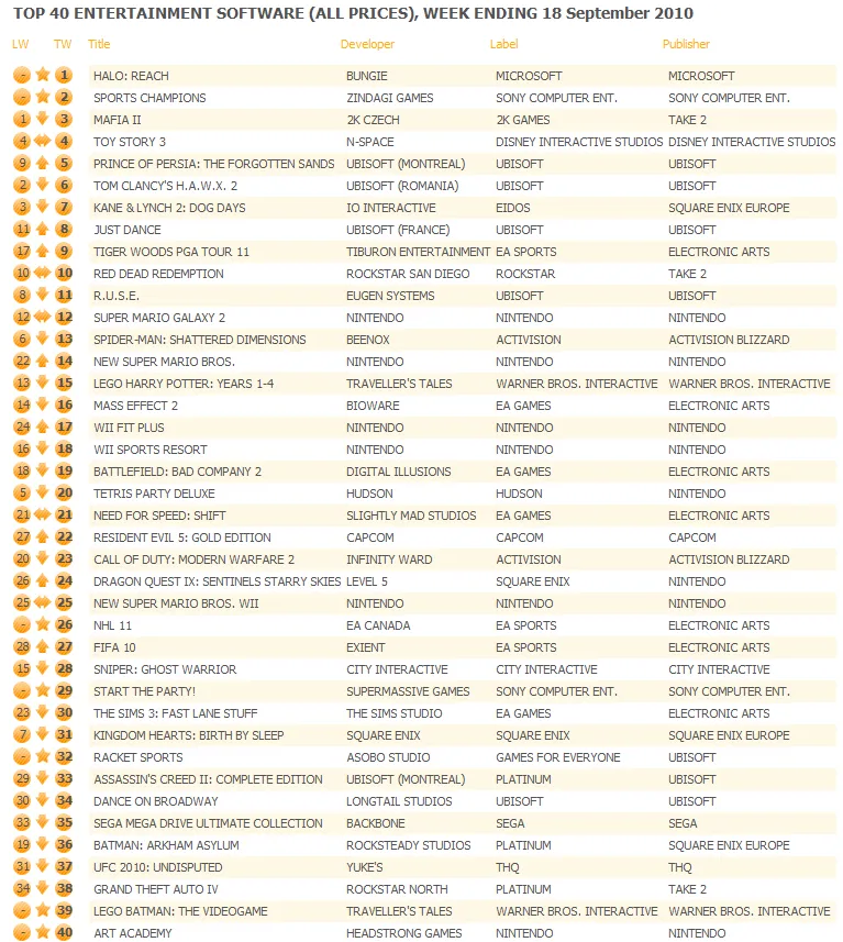 На этой неделе,в Великобританском чарте "UK CHART" игра Halo:Reach по продажам заняла первое место,HURRAY!