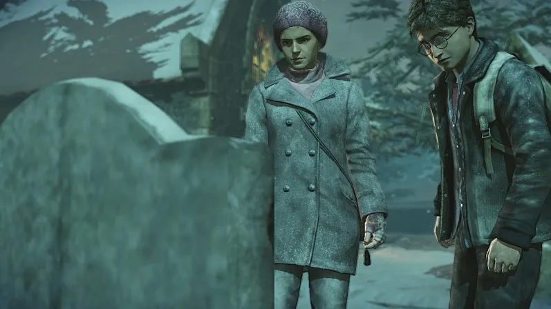 Гарри и Гермиона в Годриковой Впадине у могилы родителей Гарри.