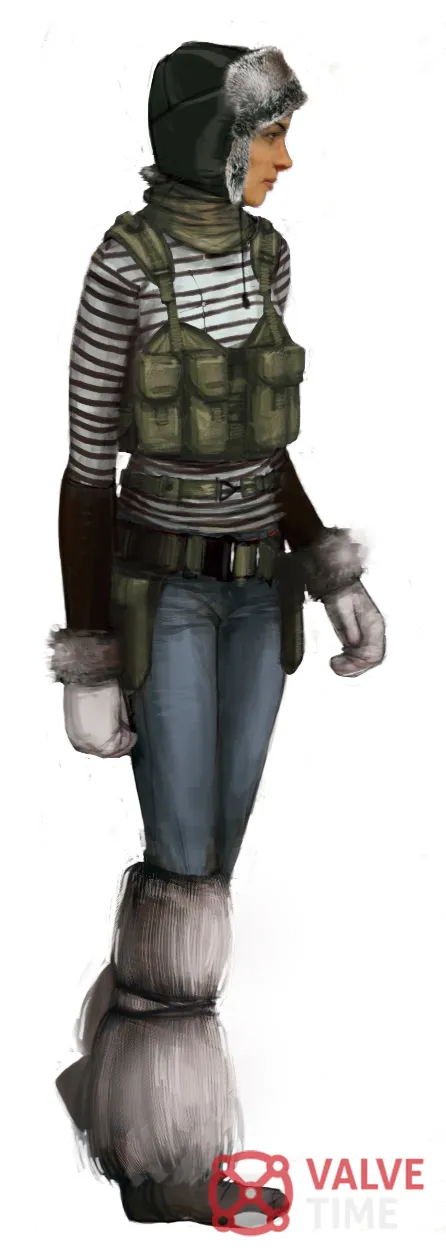 На этих набросках изображены модели Alyx Vance в колоритной зимней одежде (шапка-ушанка с красной звездой присутствует), разбитый вертолет, который фигурировал в финале второго эпизода. Замечены и Советники Альянса. Несколько рисунков показывают нам нечто бесформенное, аморфное и абстрактное, судя по всему, что-то связанное с миром Зен. В конце галереи несколько моделей, судя по всему, повстанцев с альпинистским снаряжением.