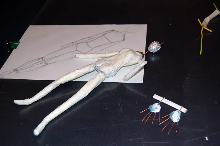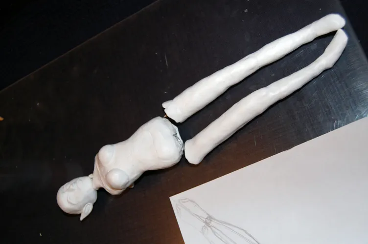 Начать я попыталась с такого вот скелета, уже готова была его как следует склеить, как меня осенило, что на подобного рода конструкцию сложновато надевать болванчик из фольги, да и пластикой самой по себе облепливать выйдет малость жирно. В результате покоцала, и руки пошли отдельно, ноги - отдельно.