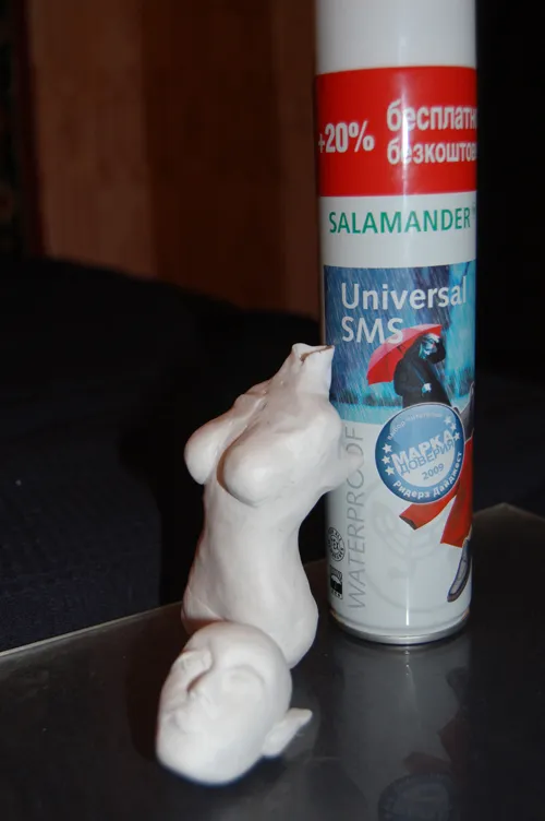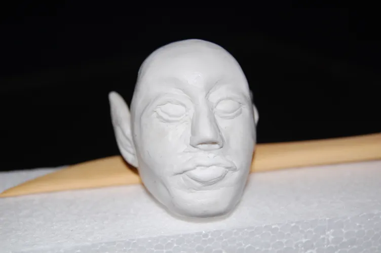 Первая попытка слепить голову оказалась... ну... не то чтобы совсем неудачной. Но первая попытка - на то и первая, чтобы получился не шедевр. На голову я убила часа три, ковыряя ее стеками с каким-то маньяческим упорством. В итоге получилось более-менее, и после ошкуривания вполне пригодно под дальнейшую раскраску. А что не раскрашу - то волосами прикрою потом!
