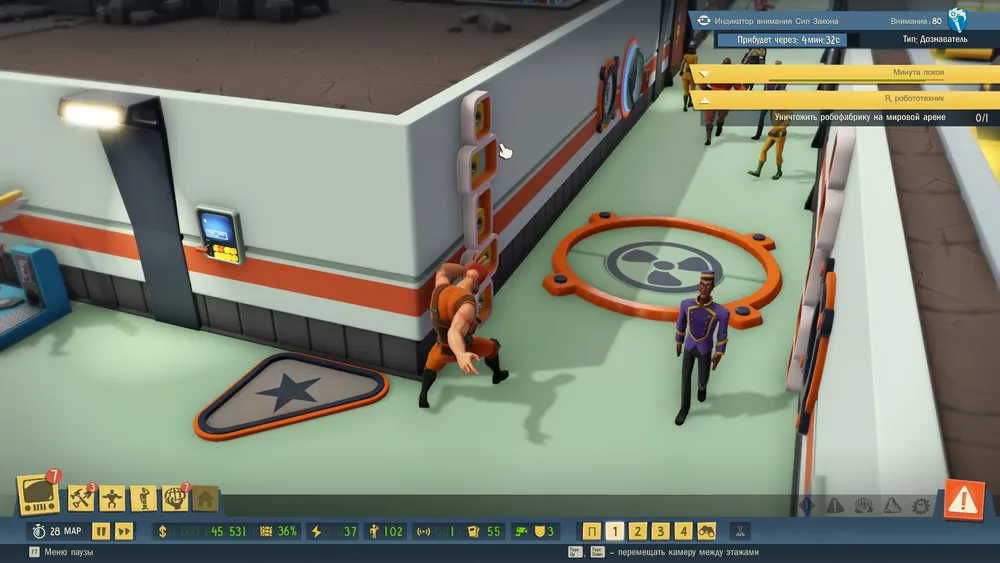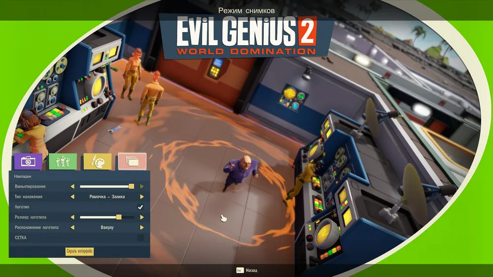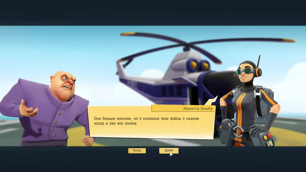 Художественной истории мы не увидим. Хотя некоторые миссии сопровождаются забавными диалогами злого гения со своими миньонами. В какой-то момент Макс решит, что пора заниматься своим оружием возмездия для устрашения мира и это будет проект МИДАС. Так у ученых прибавится работы в лабораториях: надо будет исследовать не только технологии для развития базы и способностей миньонов, но и для захвата мира. Путь к мировому господству будет долгим, поскольку каждый важный шаг тормозит рутина побочных заданий.