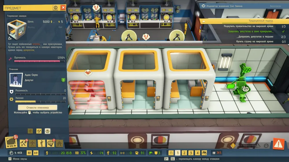 При всём при этом Evil Genius 2 больше напоминает казуалку. Казуальная суть игры не является преступлением, среди таких дружелюбных к массовому игроку проектов хватает хороших тайтлов, досадно только, что от этого страдает разнообразие игрового процесса. Ведь по сути Evil Genius 2 похож на вариацию "Веселой фермы": наряжаем свой огород побрякушками (строим базу, приобретаем новые предметы интерьера), стараемся пропалывать сорняки (ловим агентов) и время от времени собираем урожай (открываем карту мира, устраиваем махинации). Затем заглядываем на вкладку выполненных миссий и жмём по кнопке завершения и получения награды. После этого прогресс сдвигается чуть вперёд и недоступные до этого исследования становятся открыты.