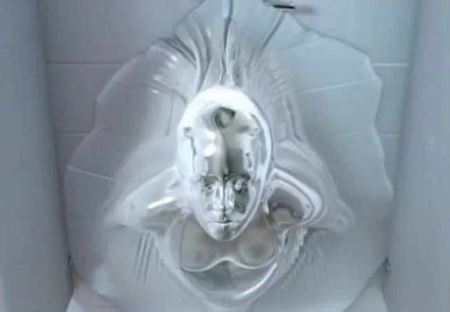 Поврежденный Т-1000 может неожиданно против своего желания начать сливаться с покрытием пола или с предметами, с которыми контактирует.