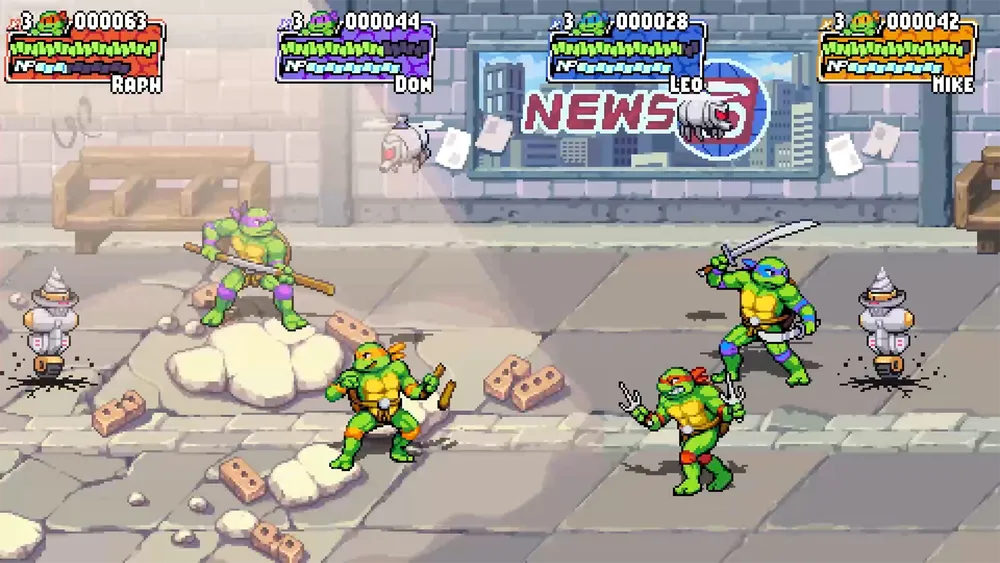 Пиксельный (под 80-е) сайдскроллер-битемап за авторством Tribute Games (часть разработчиков трудилась над Scott Pilgrim vs. The World: The Game и TMNT для GBA) будет издаваться DotEmu (разработчик и издатель Streets of Rage 4) благодаря сотрудничеству с обладателями интеллектуальных прав на вселенную TMNT Nickelodeon. Заявлена совместная игра для четырёх играющих одновременно пользователей.