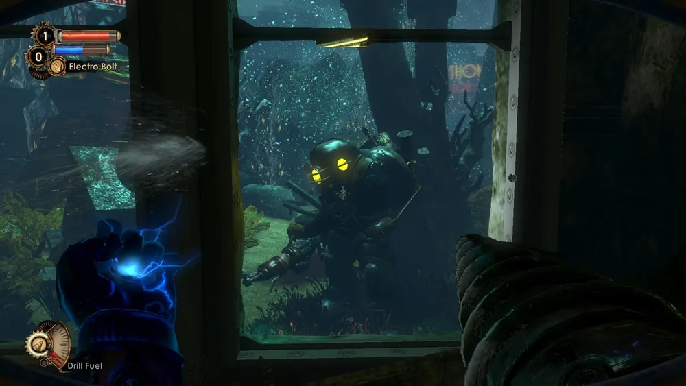 Как известно, играем мы за большого папочку, который наделен интеллектом, а не слепо следует за маленькой сестричкой. Поэтому управление отчасти изменилось. Стоит нам только начать играть, как мы уже огромной буровой установкой делаем совершенно неаккуратные дыры во вражеских телах. При этом, правда, остались и «магические» умения. Так наш «папочка» почти сразу же начинает кидаться молниями, как некогда это делал Джек.