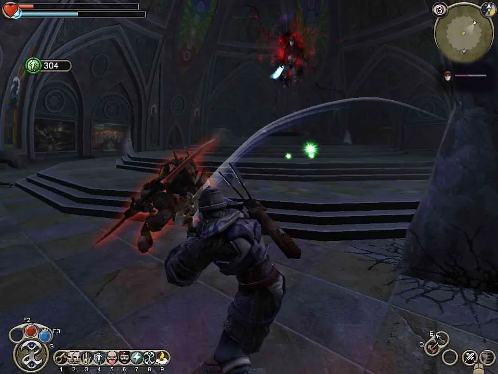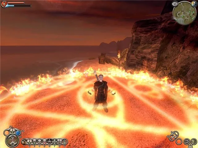 Теперь уже, взяв охапку заданий, отправляемся в темные леса. Встречаем наших первых полноценных противников - разбойников, хоббов (что-то вроде маленьких орков), небольших скорпионов. Кстати, в игре присутствуют обратные квесты. Например, в одном из них нас попросят защитить ферму от набегов воров, в другом - помочь стащить с фермы пару ящиков (выполняя квесты голышом, ты получишь больше денег и опыта). Выберешь темную или светлую сторону? Взять ли больного путника, отставшего от торгового каравана? Наверное, взять. Но мы ведь не знаем, что через некоторое время этот путник превратится в неслабенькой силы оборотня.