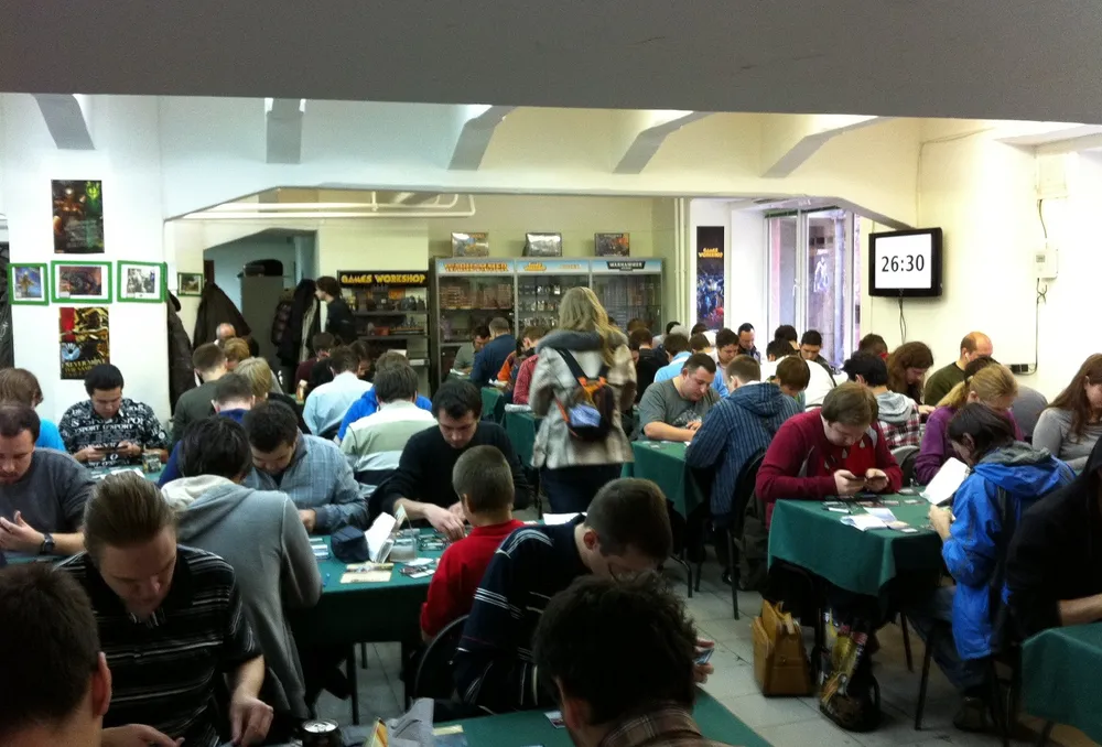 В небольшие промежутки между раундами все участники высыпали на улицу, где живо обсуждали перипетии прошедшего раунда — делились советами и впечатлениями. «У меня был Джаггернаут», — радостно рассказывал рослый мужчина в плаще. «А мне вообще с картами не повезло», — сетовал на невезение невысокого роста парень. Наблюдать за этим общением было действительно интересно — люди живут своим хобби и это здорово.