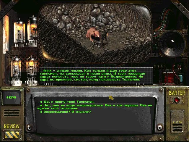 На заметку: есть и другой вариант. Забрать из шкафчика в этом доме сырные шарики, спуститься по лестнице, которую не видно сразу за стенками одного из домов около заброшенного реактора. Внизу окажется некая община вокруг какого-то предводителя. Которым окажется здоровый умный розовый кротокрыс. За порцию сырных шариков он вступит в беседу и завяжется тот же квест по оптимизации станции.