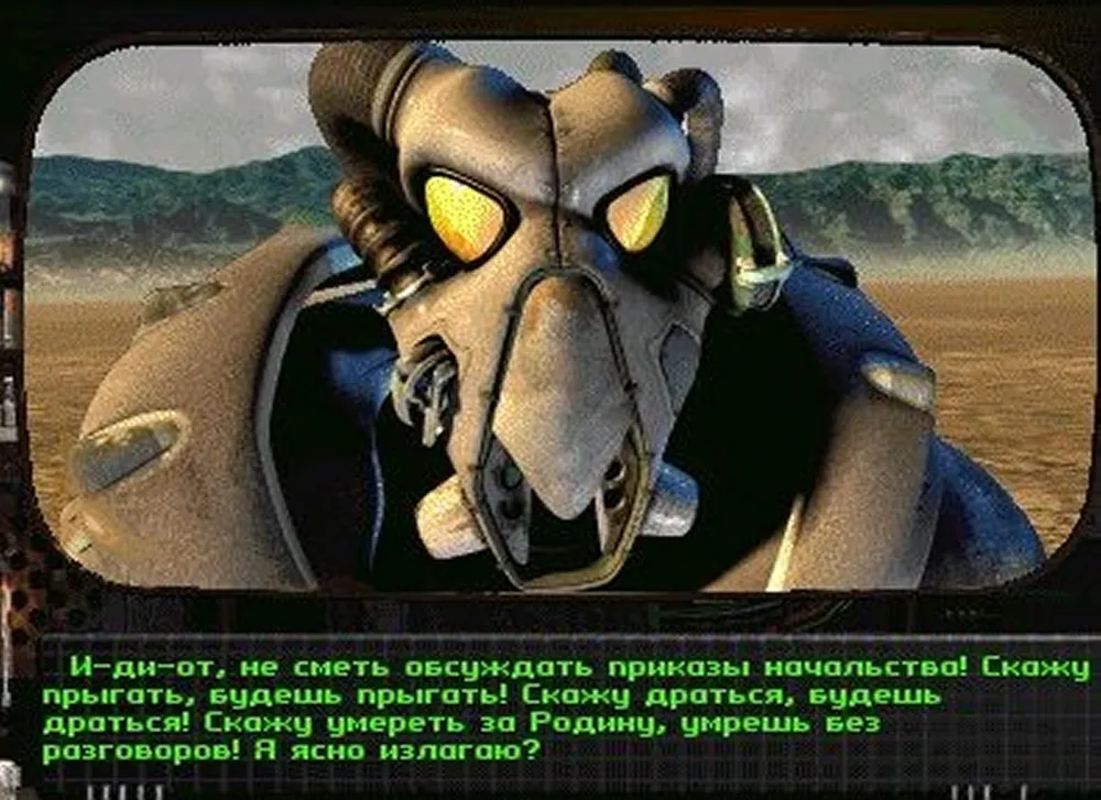 «Выглядишь как из какой-нибудь игры про боевых роботов. Тут Fallout 2. Может, не та папка на харде открыта?»