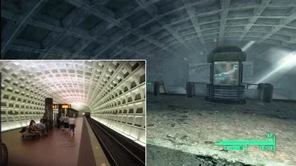 Создатели Fallout 3 не пожалели время на систему метро, поэтому она выглядит вполне достоверно (хоть и втиснута в пределы игры). Положение каждой станции не совсем соответствует реальному, но заимствует стиль насколько возможно. Сверху вы можете увидеть станцию Foggom Bottom.