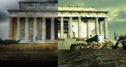 Вновь удивительное сходство, хоть и не хватает ступеней и некоторые декоративные элементы явно стерлись. Не сказать, чтобы разрабы сильно перетрудились, создавая мемориал – это просто коробка с несколькими колоннами.